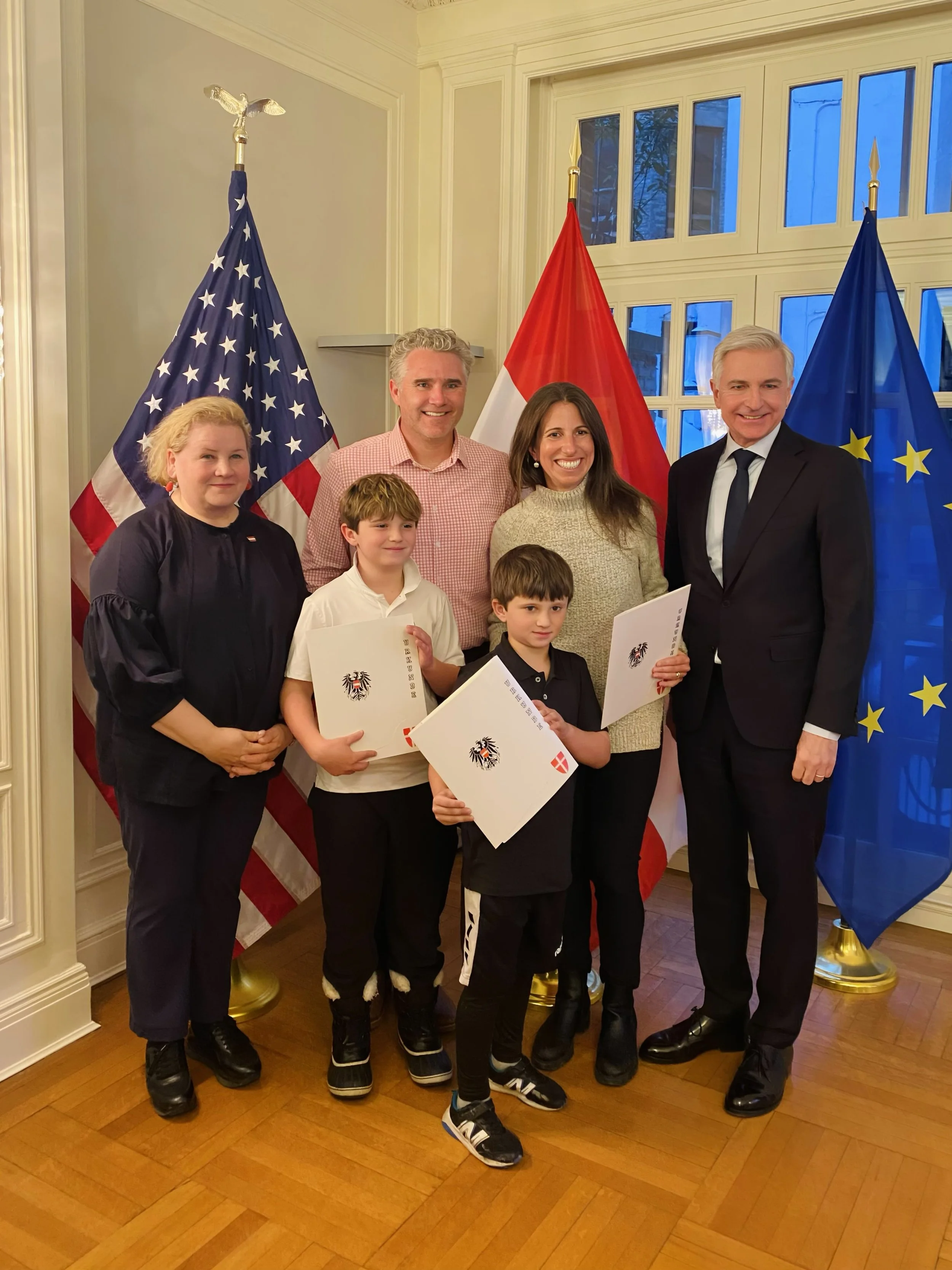 Por la tarde, el ministro federal Schumann recibió a un grupo de austriacos que recientemente habían completado sus respectivos procesos de ciudadanía como descendientes de personas perseguidas por el régimen nacionalsocialista, antes de reunirse con un grupo más numeroso de austriacos residentes en Nueva York.